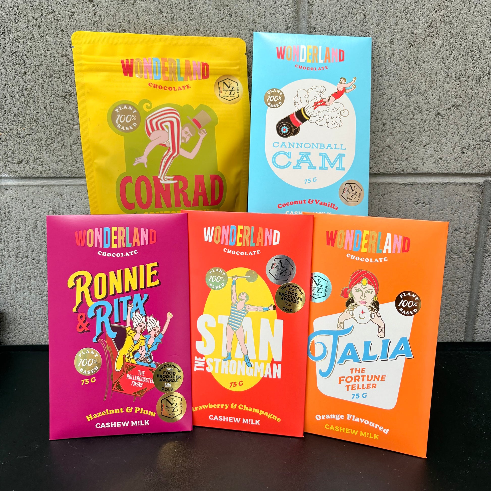 Sweet, zesty, juicy, and a little bit cheeky, The Fruit Troupe is here to steal the spotlight (and your heart). This fabulous five brings big fruity energy with every bite... all wrapped up in our signature, creamy, 100% plant-based chocolate.